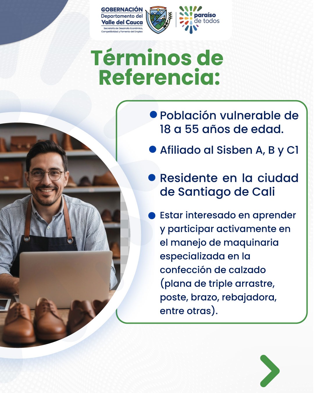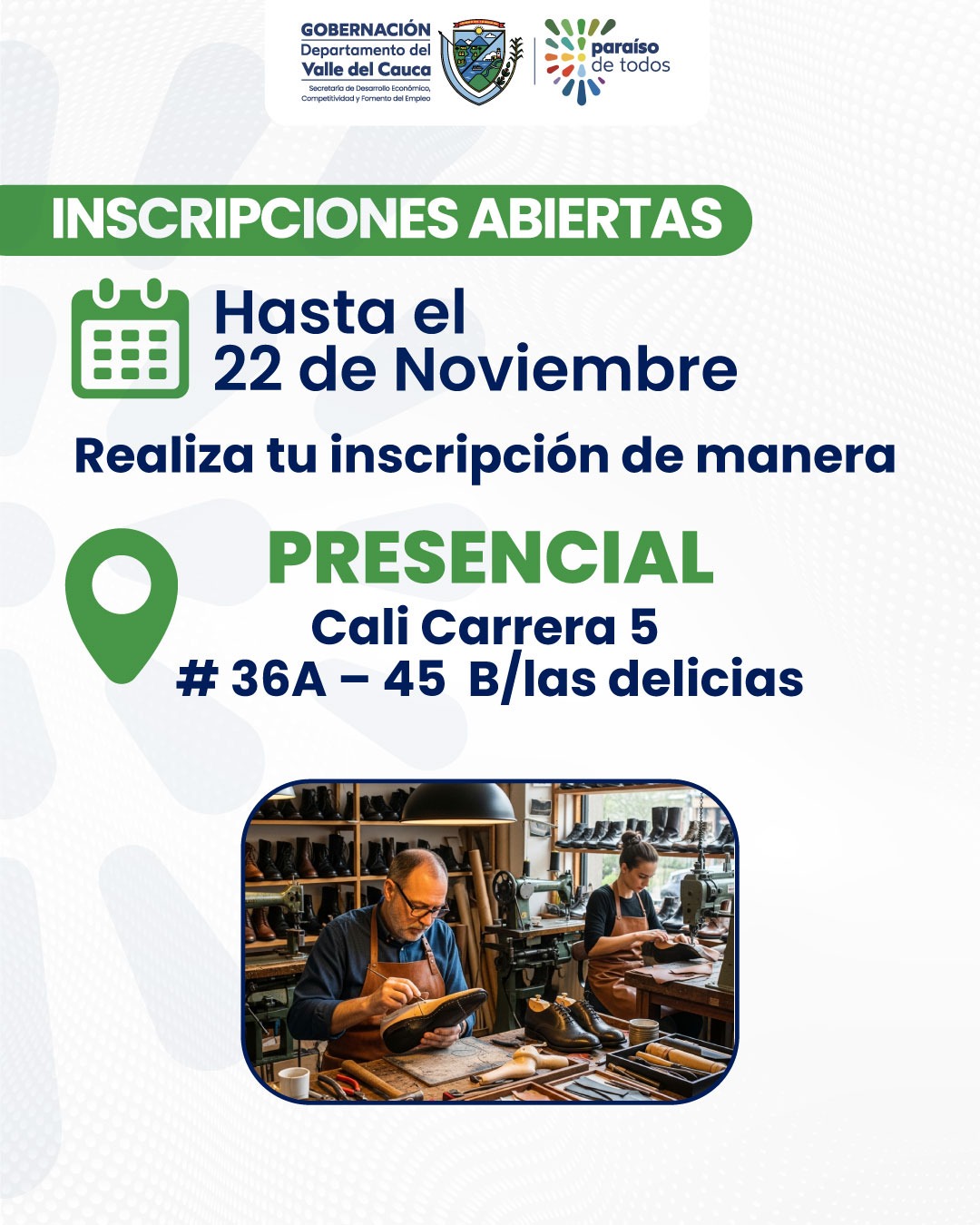 La Gobernación del Valle del Cauca abre formación gratuita en confección de calzado y manejo de maquinaria industrial, con acceso a insumos y acompañamiento para impulsar tu empleo o emprendimiento.