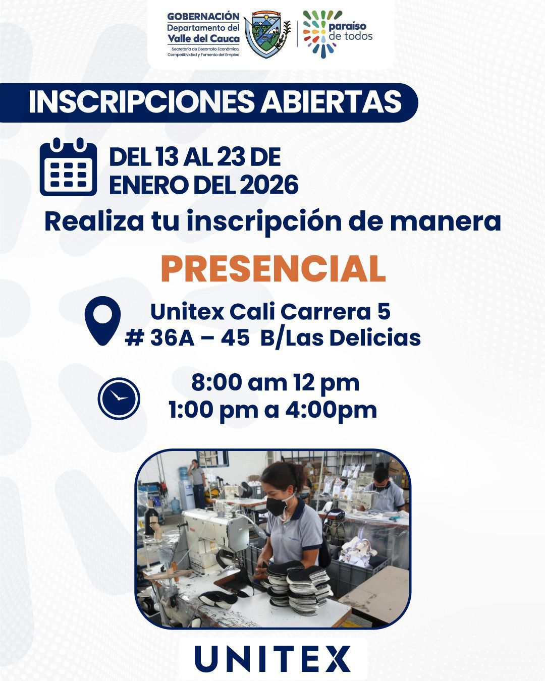 📍 Lugar de inscripción: Unitex Cali
